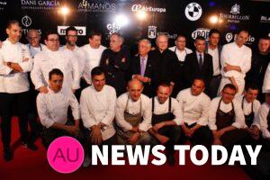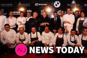 Joan Roca*** (Celler de Can Roca – Girona), Daniel Humm*** (Restaurant Eleven Madison Park – New York), Paco Pérez***** (Miramar), Quique Dacosta*** (Restaurant Quique Dacosta – Alicante), Ángel León** (Restaurant Aponiente – Cádiz), Albert Adrià** (Restaurant Pakta – Barcelona), Andoni Luis Aduriz** (Mugaritz – Errenteria), Ricard Camarena* (Restaurant Ricard Camarena – Valencia), Rodrigo de la Calle (Restaurant El Invernadero – Madrid), Toño Pérez** (Restaurant Atrio – Cáceres), Marcos Morán* (Restaurant Casa Gerardo – Asturias) Paco Morales (Restaurant Noor – Córdoba), Paco Roncero** (Restaurant La Terraza del Casino – Madrid), Sebastian Frank**(Horvath-Berlín), Ramón Freixá** (Hotel Único), Francis Paniego ** (Restaurant El Portal de Echaurren – Ezcaray), Josean Alija* (Restaurant Nerua – Bilbao), and Ferrán Adriá next to Dani García**