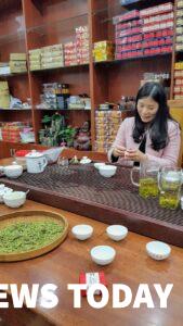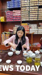 In China, the Tea is really important, not only to their culture but to their daily lives. There, every home, office, and restaurant has its particular tea table, and everyone knows how to make tea and enjoy the special Tea Ceremony. That day we also visited a shop where our friends made us tea package gift. They serve tea in small cups and drink it very hot and taking sips up to 20 times. This particular Tea is made from tea tree leaves.
